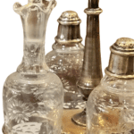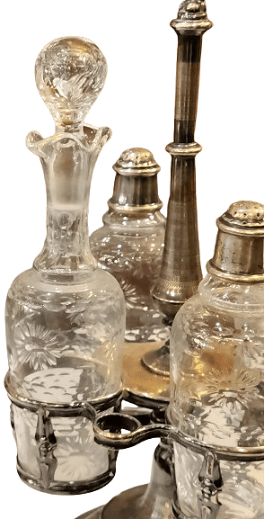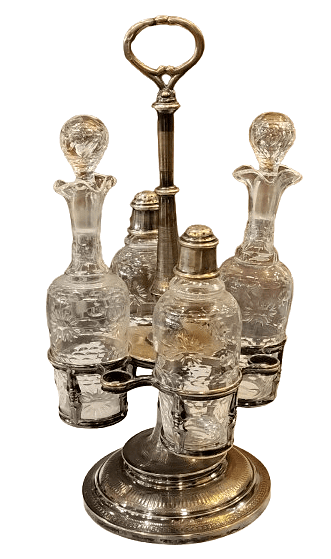 Vinagreras realizadas en plata de la Real Fábrica, Corte de Madrid, constraste (punzón) «Espuñes», del siglo XIX.