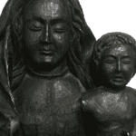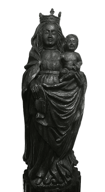 Escultura de una virgen con el niño en madera del siglo XX.